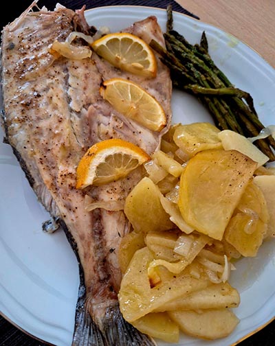 Hacía tiempo que no preparaba pescado al horno. El punto de cocción es lo más complicado para que salga bueno, pero si lo pillas, es un triunfo en la mesa. Así que pase por el Mercado Central y compre dorada.