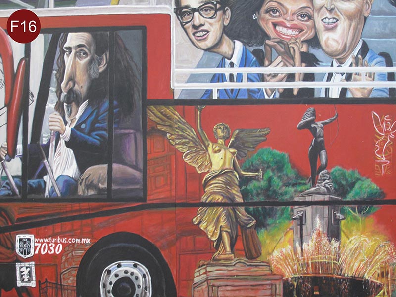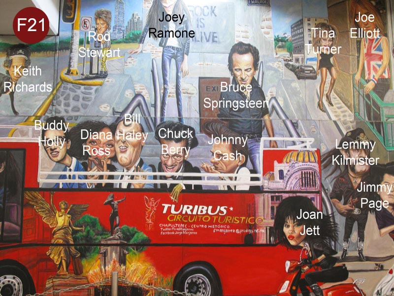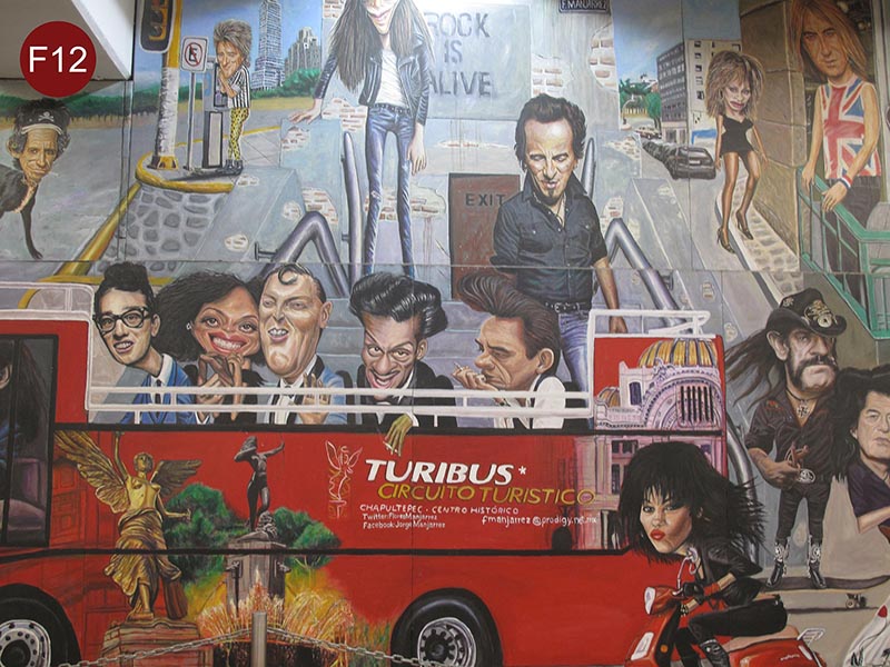 La obra de esta sección se concentra en el Turibús, el tradicional autobús turístico que lleva turistas “rockanrolleros”: Buddy Holy, Diana Ross, Bill Haley, Chuck Berry y Johnny Cash. Al volante está el experto guía de turistas: Frank Zappa. No se distingue bien si Bruce Springsteen se encuentra parado en las escaleras cerca de Joey Ramone o es uno de los distinguidos turistas abordo del vehículo que viaja de pie.
