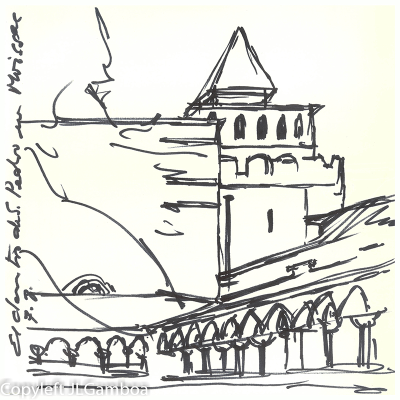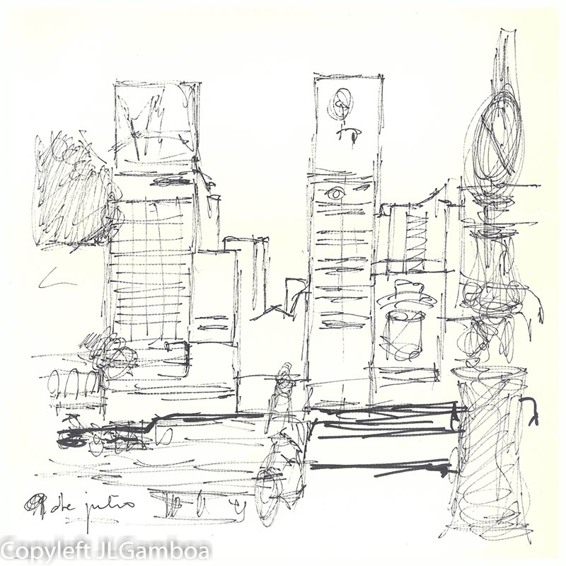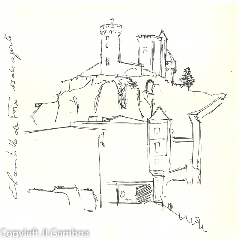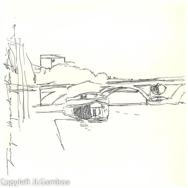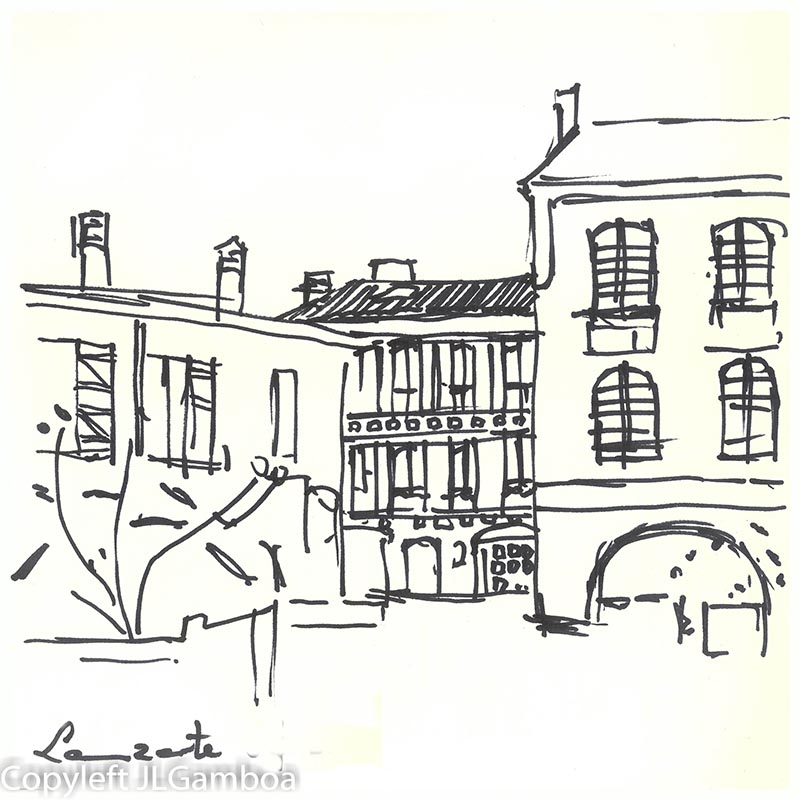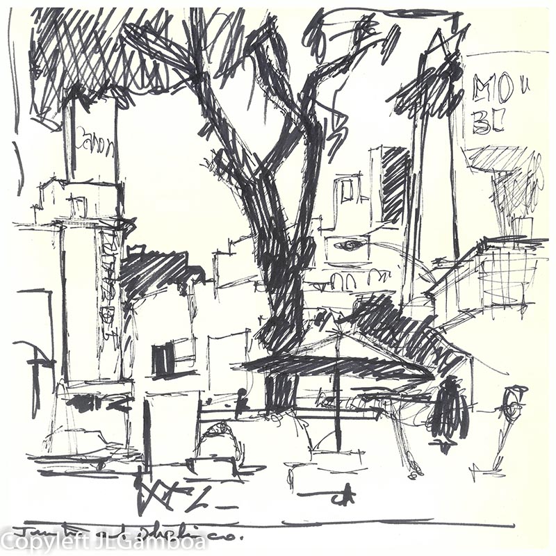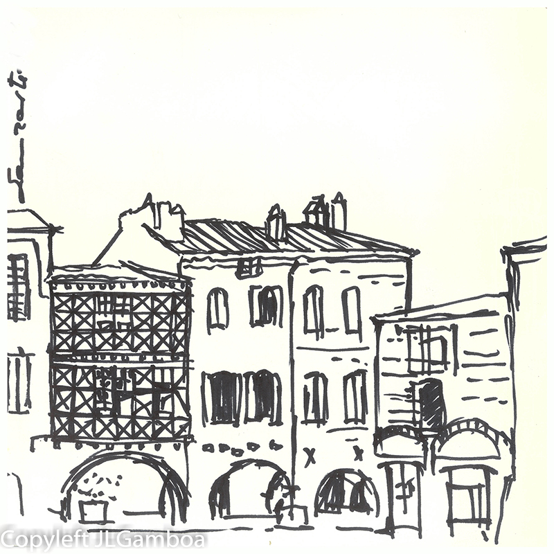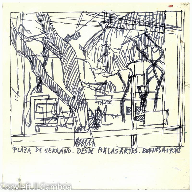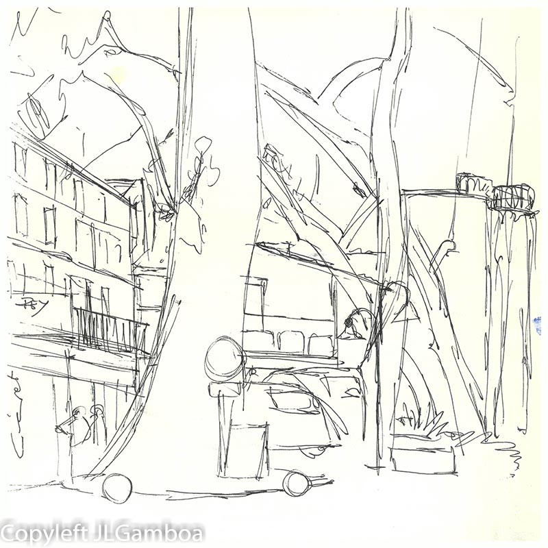 Hay dibujos de Buenos Aires, sur de Francia (Lazarte, Céret, Moissac, Toulouse, Foix), Madrid (Templo de Debod. Plaza de Chueca, una cafetería, Palacio Real, Almudena),