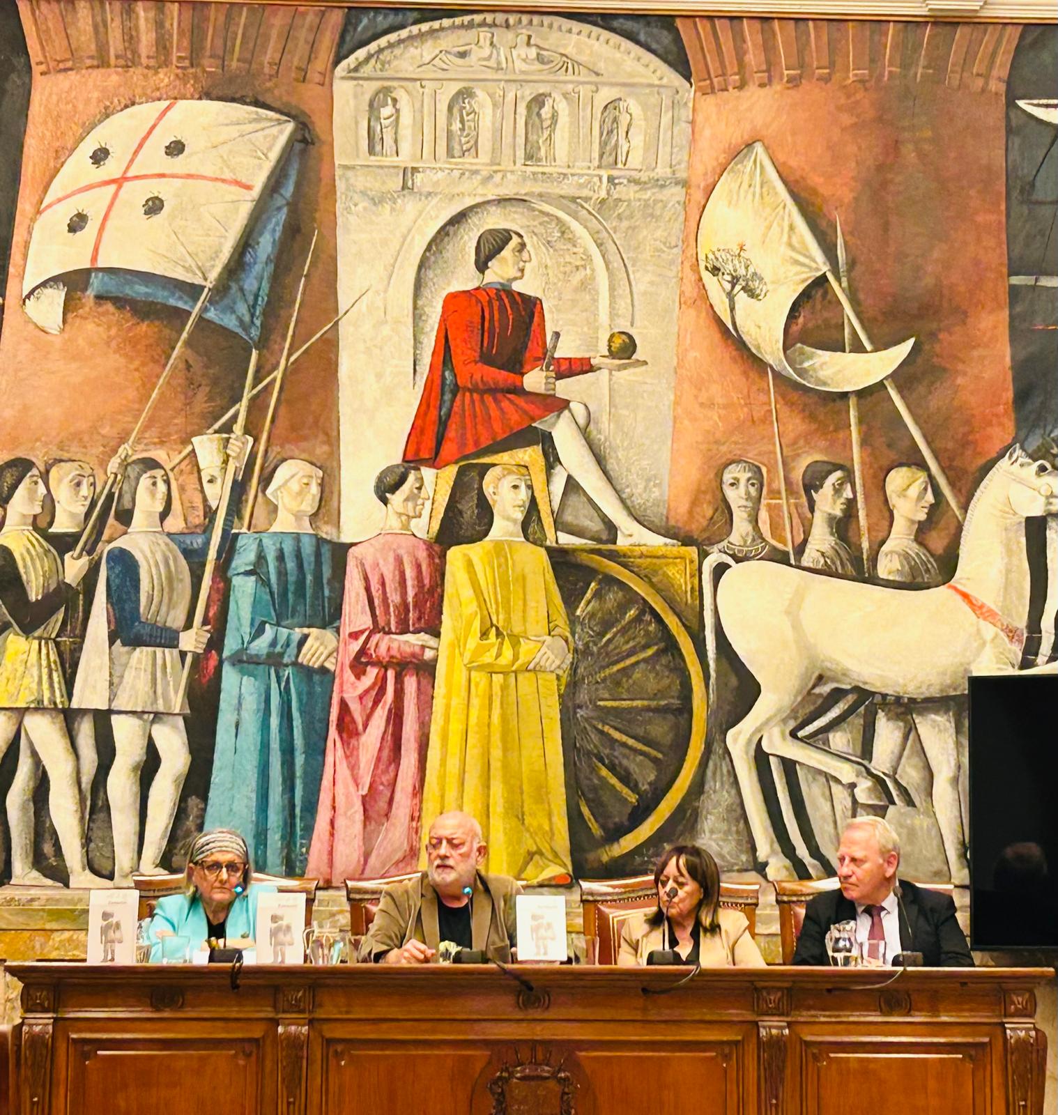 La presentación del libro de relatos sobre obras del escultor se llevó a cabo en el antiguo salón de plenos de la Diputación Provincial de Zaragoza.