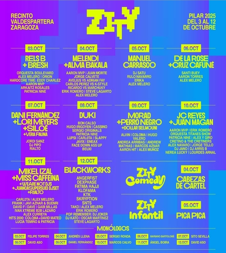 Con este cartel, el Zity 2025 confirma su posición como el festival más importante de las Fiestas del Pilar y uno de los eventos musicales más destacados de España. Diez noches de música en vivo, comedia y experiencias para todos los públicos que volverán a convertir a Zaragoza en el epicentro de la cultura y la fiesta durante el mes de octubre.