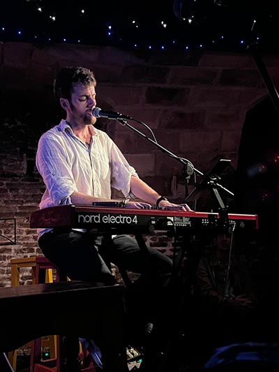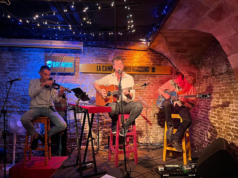 Se trataba de la presentación de su disco “The Moon”, diez composiciones propias que Andrés ha estado componiendo y arreglando en los últimos años y que cantó acompañado de su guitarra y teclado, apoyado por otros conocidos músicos de la escena musical zaragozana como Paul Den Holder (guitarra eléctrica) Miguel Ángel García (Michel) al violín y Sergio López (Snowy) voz y trombón.