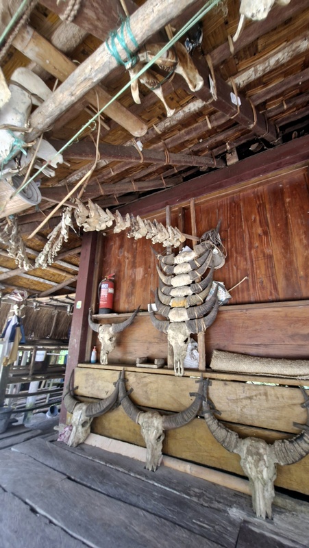 Las decoraciones de las paredes de las casas hacen referencia al valor familiar y suspenden multitud de cuernos, mandíbulas y cráneos de búfalo dando una imagen indígena y trivial importante.