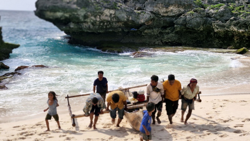 En la bahía de Pero vimos salir apresurados a los pescadores, todos al mismo tiempo, pues algún banco de peces se aproximó a la costa justo cuando llegamos. Al igual que en Ratenggaro, una lengua de arena construye un pequeño dique natural y permite al poblado tener un puerto para sus barcas.