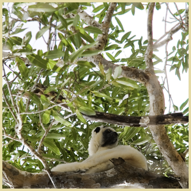 …de especies endémicas malgaches como el fosa (el depredador más grande de la isla), y la rata gigante saltadora).En el P.N. de Kirindy viven varias especies de lemures que pueden verse si se presta la necesaria atención en las sosegadas incursiones que pueden realizarse fuera de temporada turística como hicimos Silvia y yo recientemente. En aquel reposado caminar pudimos observar el progresivo deterioro que el cambio climático deja sobre la antaño exuberante vegetación y vida silvestre que inexorablemente desaparece ante nuestros ojos.