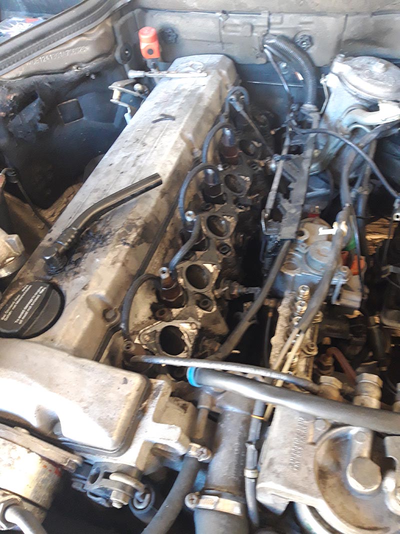 Y como si se nos hubiera aparecido la Virgen del Pilar, Joaquín cuando se liberó de sus obligaciones y estando nuestro amigo hinojosano Andrés Garcés como pinche, desmontó el motor, diagnosticó el problema (de los 6 calentadores del Mercedes, 5 estaban fundidos) los sustituyó, volvió a montar el motor y el coche se puso en marcha como un cohete