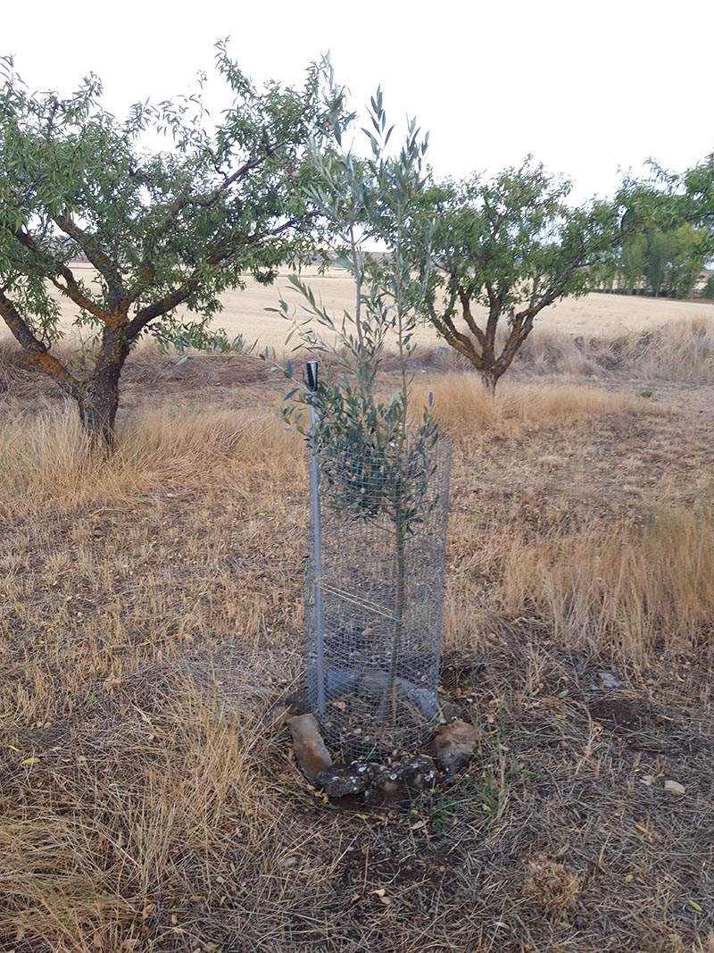 …para, posteriormente, realizar unos hoyos (alcorques) que se hacen alrededor de la base del árbol para retener el agua de lluvia o de riego, en su caso