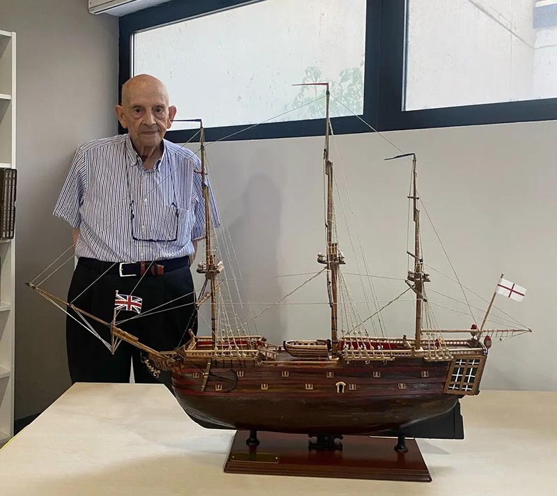 Antonio Giménez, 95 años, carpintero de alma y corazón, culmina la réplica del HMS Victory en la residencia Rey Ardid Delicias
