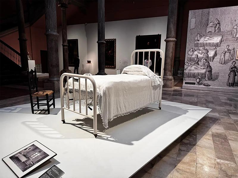 Ya en el ámbito 5 de la exposición se aborda que la atención de la demencia en el hospital poseyó fama y prestigio internacionales. Los enfermos mentales eran atendidos en edificios independientes, dado que su rehabilitación pasaba principalmente por desarrollar trabajos en el propio establecimiento. La curación de la demencia continuó siendo uno de los objetivos del hospital. Enfrente, como parte del mismo hospital de Convalecientes, se edificó el Departamento de Dementes —en activo desde 1829—, constantemente mejorado por la Diputación Provincial.