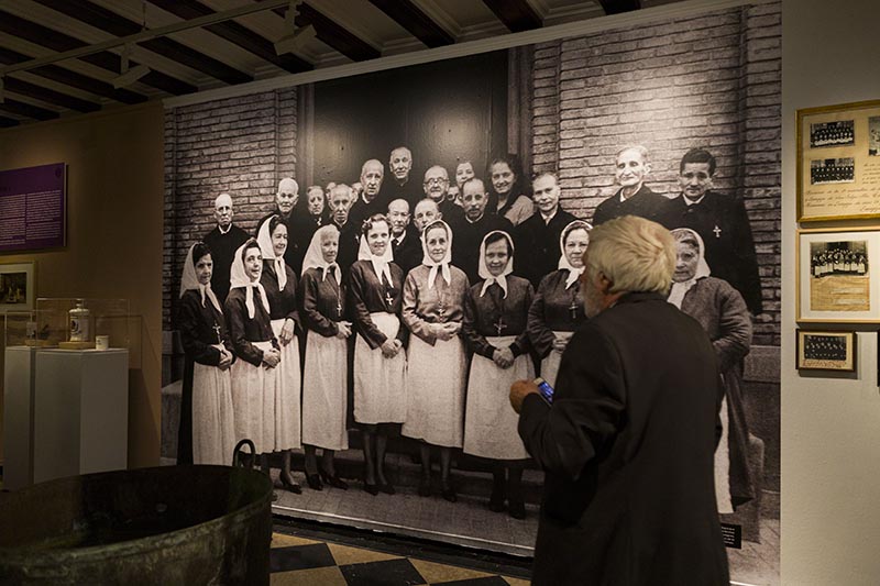 Otro de los aspectos que se aborda en la exposición es la caridad y beneficiencia. La Diputación de Zaragoza, siguiendo un modelo territorial nacional, incluyó la ayuda hospitalaria en la sección de Beneficencia desde su fundación. El Hospital Provincial, heredero del hospital de Gracia, pasó a formar parte del conjunto de instituciones y servicios de ayuda a los necesitados provenientes del Antiguo Régimen como, por ejemplo, la Casa de Misericordia, y continuó empleando la fuerza de estas congregaciones.