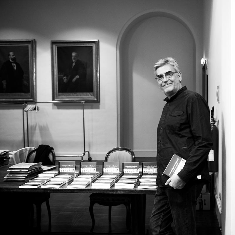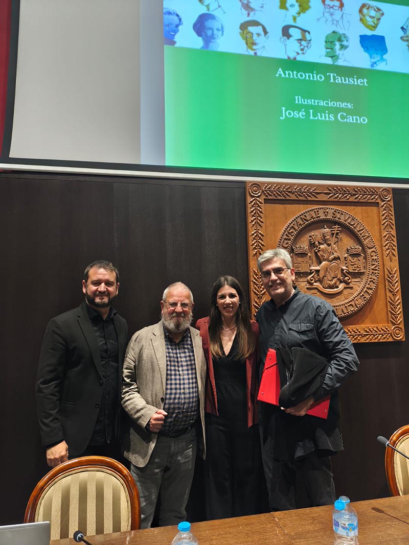 Pero es que, no contento con todo esto, pregunté al ilustrador José Luis Cano, cuya obra me encanta, si le apetecía dibujar los 158 retratos de los personajes que nombro, y milagrosamente aceptó, dando como resultado el cuarto libro, un precioso álbum de cromos irrepetible. Por eso, lo que se obtiene al ser poseedor de este libro es un cuarteto polifónico. Al pasar sus páginas podemos recrearnos en su música miscelánea, que no se limita al consabido texto monotónico, que es una palabra que se me ha ocurrido que mezcla monótono y unitónico.