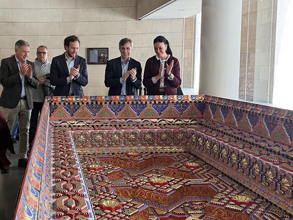 El hall de la Diputación Provincial de Huesca expone desdehace unos días y hasta el 22 de marzo el cuarto alfarje de la Sala Capitular del Monasterio de Sijena reconstruido por la Asociación “Sigena Mágica”. Se trata de un proyecto impulsado por el monegrino Juan Naya que permite redescubrir el esplendor original del Monasterio mediante una recreación fiel y artesanal del artesonado mudéjar.